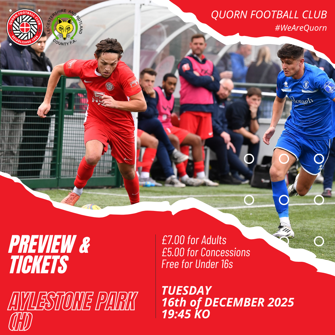 Aylestone Park currently play their football in Step Five, two divisions below Quorn, however, they’ve been close to promotion in both of their seasons at the level, losing in the playoff final on both occasions. The Park played Daventry Town last time out, losing the game by a single goal conceding in injury time of the first half from Archie May, whilst Captain Corey Armeni was sidelined through suspension. Aylestone, also known as the Reds, come into the match on the back of their worst run in recent memory, losing four straight, including an FA Vase exit to step six Retford United. However, a very tough run of fixtures has seen them face back-to-back matches versus top sides including Nuneaton Town and Histon. Aylestone’s last game in the cup saw a 3-1 win at Leicester Nirvana at the end of October.