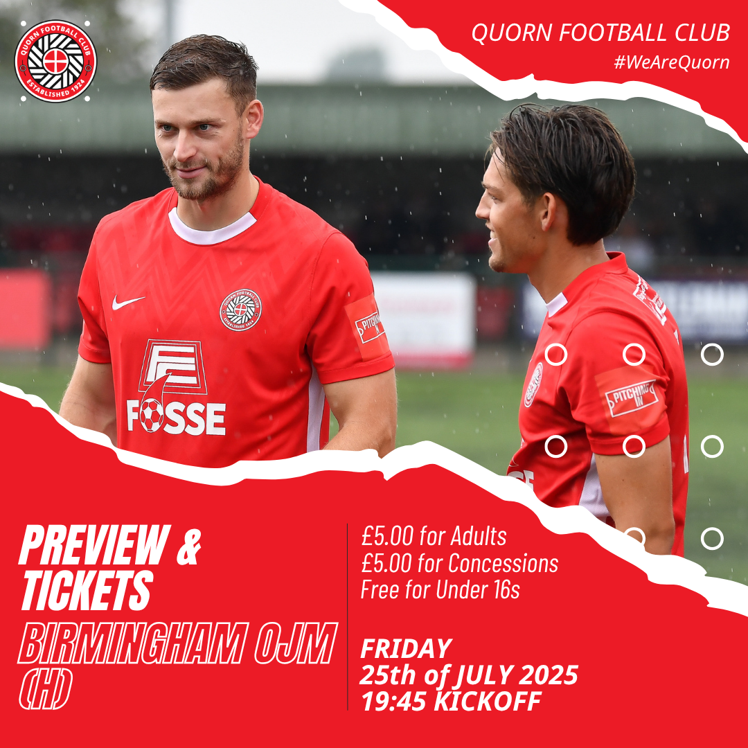OJM managed to finish 9th in the Midland League Premier last season, on 46pts, but were relegated back to step six due to ground grading issues. Their last pre-season game came against Kidsgrove Athletic, in which they lost 3-1. Quorn can hopefully replicate a similar result come Friday evening, whilst giving the squad a good chance to sharpen the edges as step three is just around the corner.