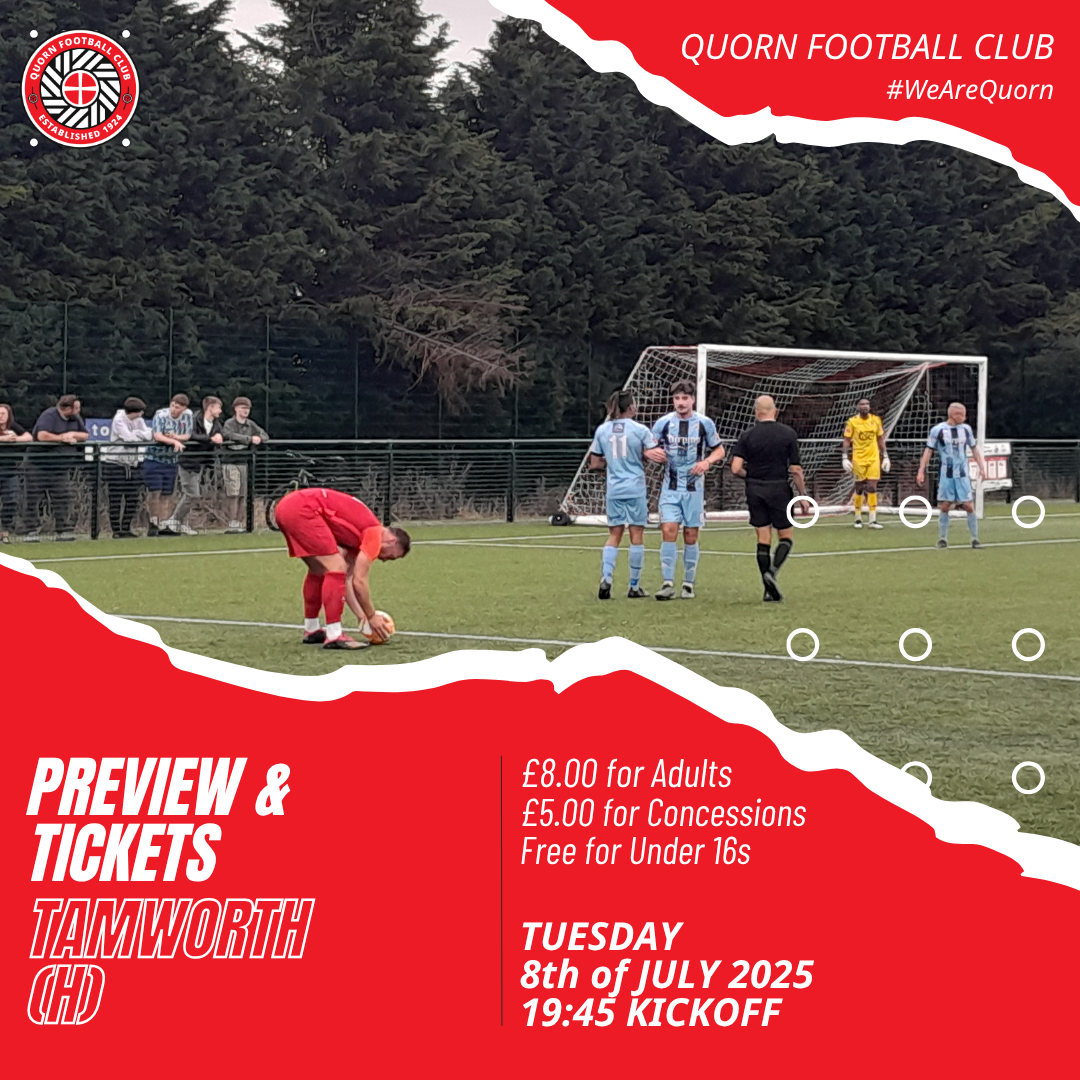 Quorn hope to continue their winning ways in as they face Tamworth in their first home game of the pre-season campaign.
