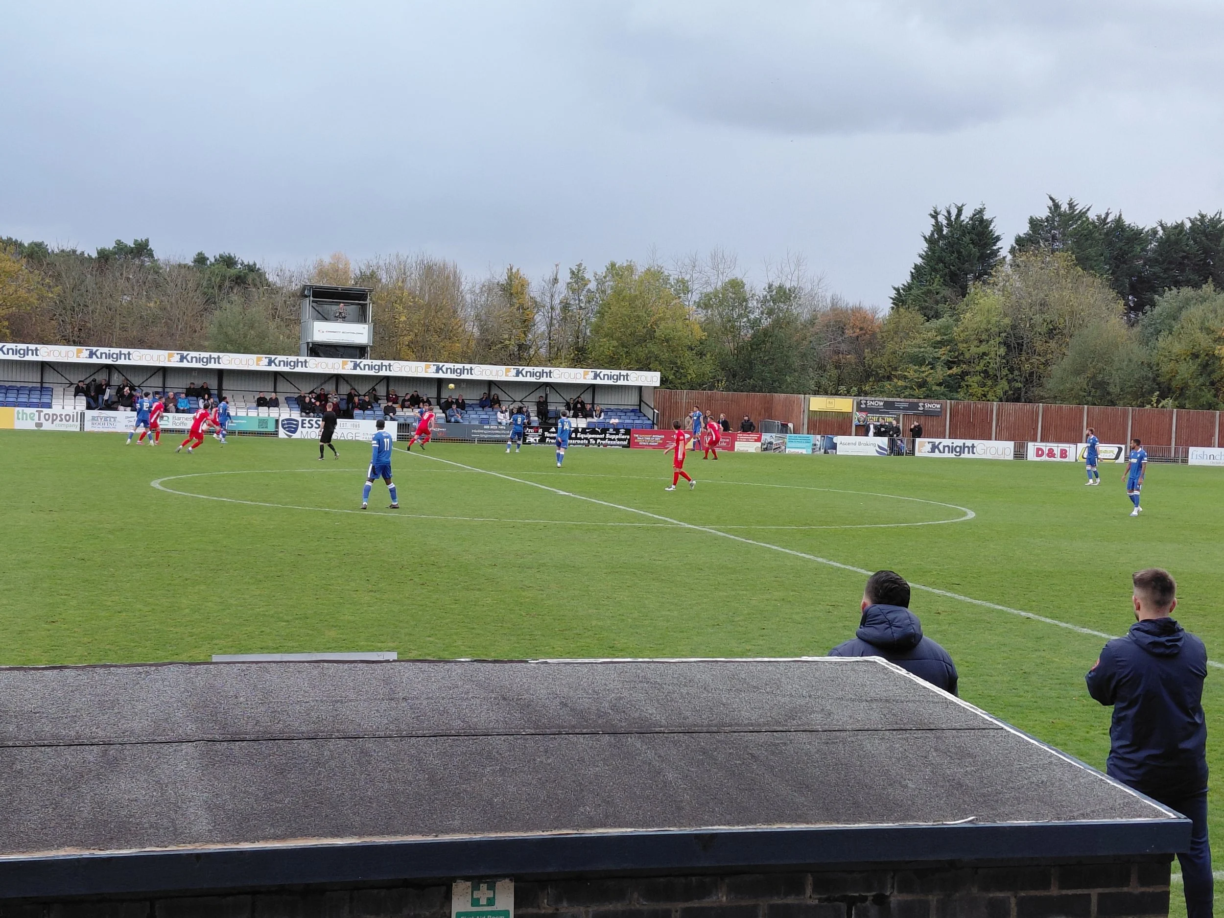 The parity lasted for 12 minutes as Stortford took the lead for a third time in the 79th minute. Saleem Akbani took advantage of some calamitous play by the Reds as the wet weather continued to deteriorate the playing surface. Quorn didn’t roll over though and drew level for a third time as in the 86th minute they broke at pace again. Fifield played a teasing cross in from the left that saw Charlie Johnson’s attempted clearance fly into his own net to make the score 3-3.
