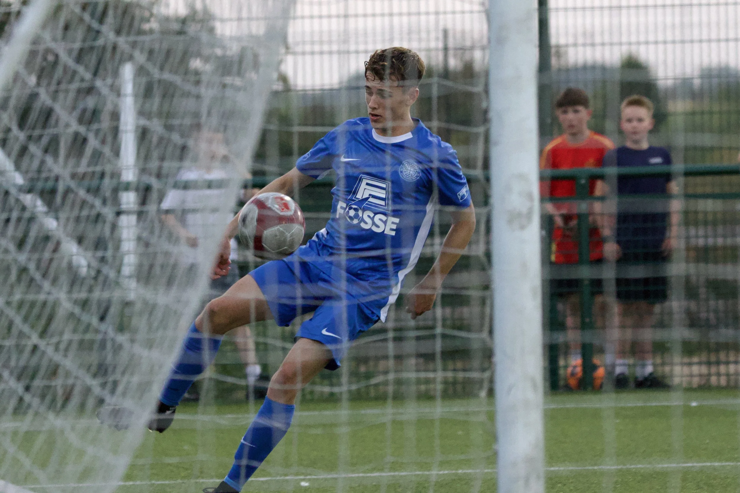 With what was a fairly equal but scrappy game, one shining light was Quorn’s number seven on the right wing, Oscar Marshall. The 18-year-old was electric in the first half, beating his man and putting some inviting balls in the box on multiple occasions.