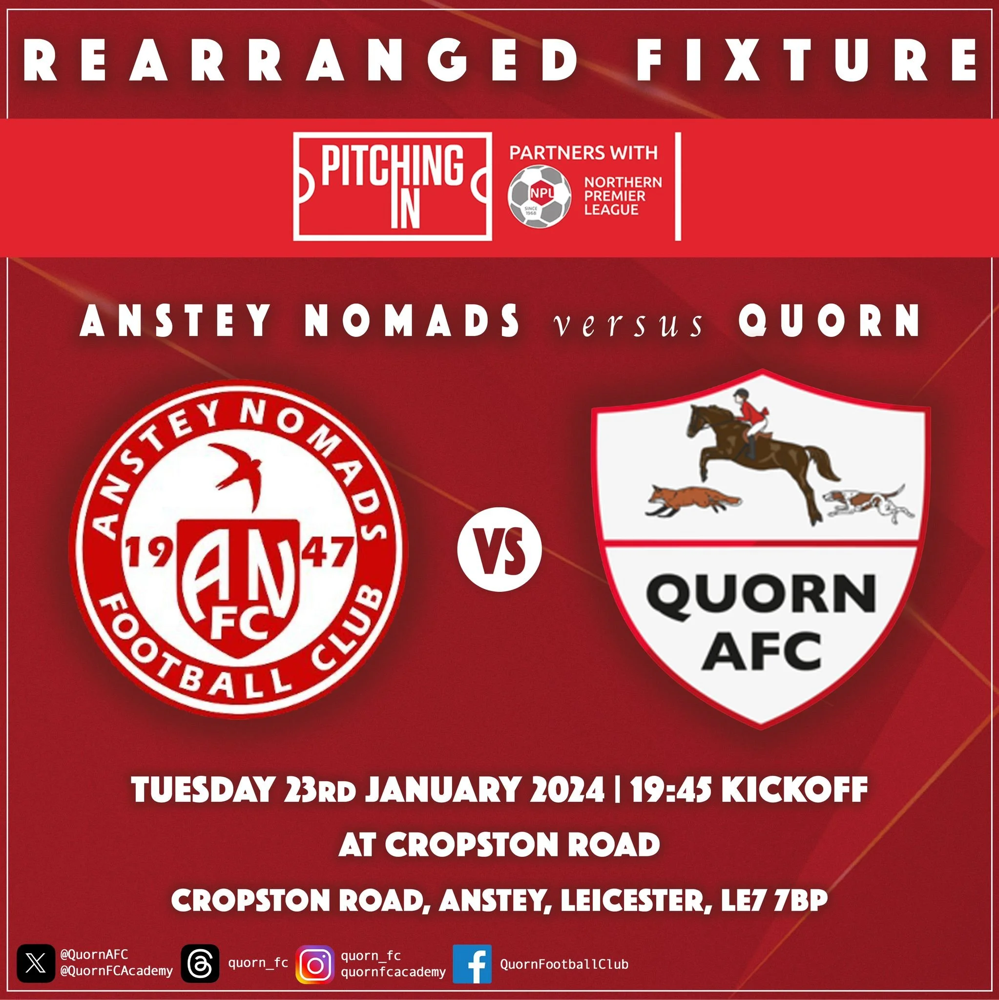 Darren Kay 2/3/24 Darren Kay 2/3/24 GALLERY | Quorn 3-1 Coleshill Town Read More Darren Kay 2/3/24 Darren Kay 2/3/24 REPORT | Quorn 3-1 Coleshill Town Read More Darren Kay 1/28/24 Darren Kay 1/28/24 REPORT | Sporting Khalsa 0-4 Quorn Read More Darren Kay 1/24/24 Darren Kay 1/24/24 REPORT | Quorn 1-1 Anstey Nomads Read More Darren Kay 1/24/24 Darren Kay 1/24/24 GALLERY | Quorn 1-1 Anstey Nomads Read More Darren Kay 1/21/24 Darren Kay 1/21/24 FIXTURE NEWS | New Date for Rushden Trip Read More Darren Kay 1/21/24 Darren Kay 1/21/24 GALLERY | Quorn 0-0 Corby Town Read More Darren Kay 1/20/24 Darren Kay 1/20/24 REPORT | Quorn 0-0 Corby Town Read More Darren Kay 1/14/24 Darren Kay 1/14/24 GRASSROOTS | Holders to Sponsor U8s Read More Darren Kay 1/14/24 Darren Kay 1/14/24 GALLERY | Quorn 1-0 Cambridge City Read More Darren Kay 1/13/24 Darren Kay 1/13/24 REPORT | Quorn 1–0 Cambridge City Read More Darren Kay 1/7/24 Darren Kay 1/7/24 GALLERY | Boldmere St. Michaels 3-0 Quorn Read More Darren Kay 1/7/24 Darren Kay 1/7/24 REPORT | Boldmere St. Michaels 3-0 Quorn Read More Darren Kay 1/3/24 Darren Kay 1/3/24 FIXTURE NEWS | Anstey Ties Reversed Read More Darren Kay 12/30/23 Darren Kay 12/30/23 GALLERY | Quorn 1-2 Hinckley LR Read More Darren Kay 12/30/23 Darren Kay 12/30/23 REPORT | Quorn 1-2 Hinckley LR Read More Darren Kay 12/27/23 Darren Kay 12/27/23 REPORT | Shepshed Dynamo 1-1 Quorn Read More Darren Kay 12/27/23 Darren Kay 12/27/23 GALLERY | Shepshed Dynamo 1-1 Quorn Read More Darren Kay 12/23/23 Darren Kay 12/23/23 REPORT | Quorn 4-2 Coventry Sphinx Read More Darren Kay 12/22/23 Darren Kay 12/22/23 FIXTURE NEWS | New Date for Anstey Nomads Trip Read More Newer Posts Older Posts